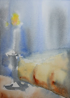 Last week I read the poem "In A Library" by Emily Dickinson. It just captured my feelings on meeting an old book. Since then I've had this image in my mind, so today I gave it a go in watercolor.